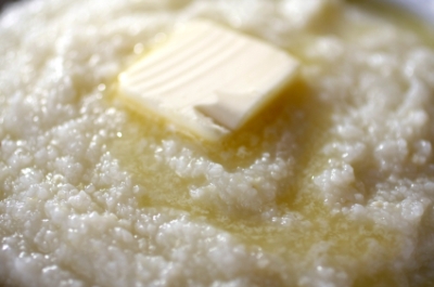 Bring water to a boil, then pour grits in while stirring. Add a pinch or two of salt. Lower the heat and simmer, all the while stirring to prevent clumping. You do NOT want clumpy grits. After twenty minutes, voila! Now, throw in butter or cheese, add some country ham, sausage, or red-eye gravy and dare I say…piping hot buttermilk biscuits, (cue gospel choir). There’s just not a better meal, breakfast or suppah! And they’re healthy too! (above additives notwithstanding). No fat, no cholesterol!